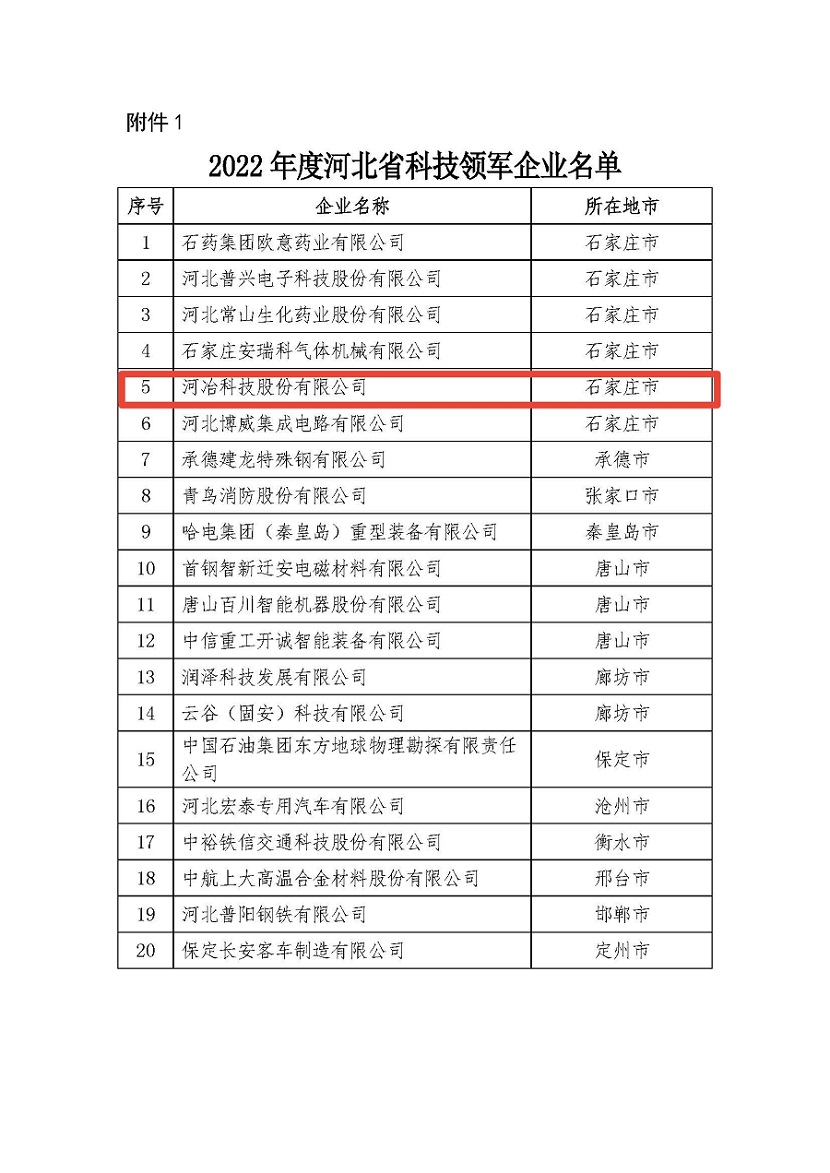 近日,河北省科技廳發(fā)布《關于公布2022年度認定河北省科技領軍企業(yè)和列入科技領軍企業(yè)培育庫企業(yè)的通知》,我公司經(jīng)推薦、評審、公示,成功被認定為“河北省科技領軍企業(yè)”。